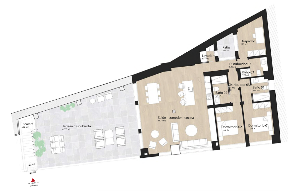 Descubre la elegancia y amplitud en esta impresionante vivienda de 123,18 m2 útiles, con una terraza privada de 67.53 m2. Situada en un entorno privilegiado, esta residencia ofrece una combinación perfecta de espacio, comodidad y lujo.